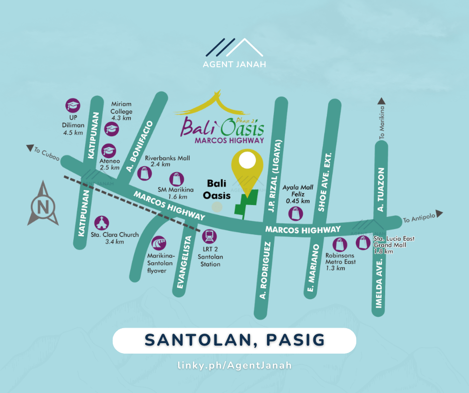 Bali Oasis is located along Marcos Highway in Brgy. Santolan, Pasig, Metro Manila. Being right on a major highway, convenience is a way of life at Bali Oasis.